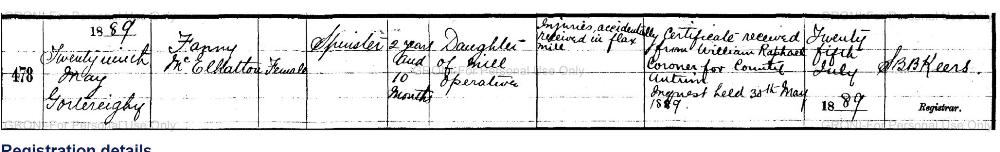 11. Fanny MCILHATTON,4 daughter of William John MCILHATTON and Margaret PATTON, was born on August 11, 1886 in Gortreighy.3 She died on May 20, 1889.3 She died on May 28, 1889.